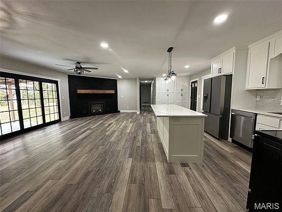 This beautifully renovated 3-bedroom, 3.5-bath home sits on 11.52 acres (m/l) and offers privacy, space, and style. Step inside to an open floor plan featuring custom-built cabinetry, quartz countertops, and brand-new stainless steel appliances. The electric fireplace adds warmth and charm to the spacious living area, while luxury vinyl laminate flooring flows throughout the home for a sleek, low-maintenance finish.The partially finished basement includes a full bath and plenty of space for additional living. The remaining basement provides the convenience of a lower-level garage and workshop—perfect for hobbies and storage. Enjoy relaxing on the covered back porch overlooking your private acreage, complete with picturesque views and abundant wildlife. Need space for your RV or boat? Check out this oversized garage and barn for all your equipment and storage needs. The paved private drive ensures easy access year-round. Whether you're watching deer at dusk or sipping coffee with a view, this property offers secluded country living approximately 1.5 miles from city limits—a rare opportunity you don’t want to miss! Schedule your private showing today and come experience the perfect mix of luxury, land, and location.