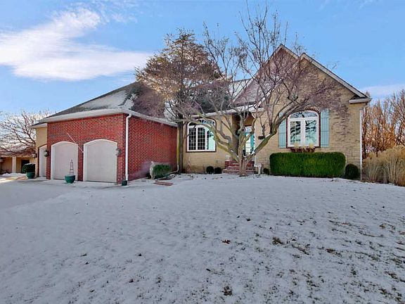 Welcome home to this beautiful custom-built perfectly located just in Sedgwick county, but with Andover schools! As you first walk in, you'll immediately be amazed at the breathtaking views of the back yard from both the living room and main floor family room. Entertaining guests will be a breeze with it's large, open living room and formal dining area, both flooded with natural light from the floor to ceiling windows. Make sure to check out this beautiful kitchen and family room featuring custom cabinetry and granite! Additionally, the kitchen provides double convection ovens, island with eating bar, pantry with pull out shelves. The huge family features a vaulted, beamed ceiling and gas fireplace. Between the kitchen and family rooms sits a quiet eating area to start your morning! You're going to love the master suite as it provides large windows providing beautiful, natural light. The master bathroom features a large soaker tub, double sinks and his and her closets. Main floor laundry with sink, additional storage as well as a door to the backyard. Downstairs, you'll enjoy the finished view out basement with its large family room with wood floors, game room/office, and 2 over-sized bedrooms and full bath. The custom wet bar is perfect, with bar seating, dishwasher, refrigerator and tons of cabinets. Out back, you'll be greeted with a stunning back yard with stone patio, spectacular landscaping, covered entertainment area with built in gourmet gas grill, and gazebo. Experience the beautiful stone and brick fence around interior patio, entertainment areas! Enjoy some of the other amenities which include: oversized 3 car garage,wood floors in living, family, formal dining and lower level family room; crown molding; sprinkler system on irrigation well; security system; surround sound; newer IR roof. The homeowner has invested nearly $38,000 replacing nearly all windows, which are under warranty with MAE. You're absolutely going to love this home. Set up your private showing today!