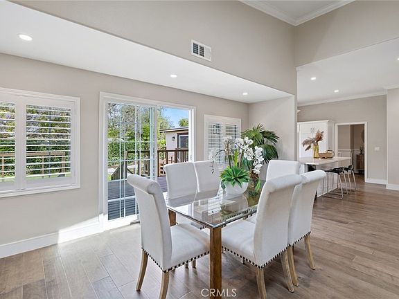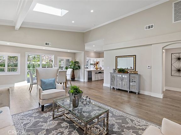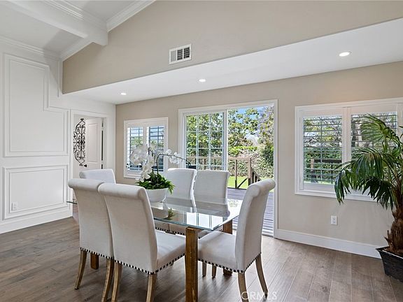 Situated on an expansive nearly 14,000 sq ft lot, this one of a kind redesigned and upgraded home has 5 total bedrooms and 4.5 bathrooms. There is a bonus separate detached casita that can be used as guest quarters or office space. House has been completely replumbed with apex and rewired. Chef's kitchen upgraded with brand new white wood cabinetry, quartz countertops, and stainless steel appliances. West wing of the house contains a whole new exclusive, private master suite with a sophisticated master bath that includes new his/hers sinks, romantic slide in tub and shower, and spacious walk-in closet. Sizeable bedrooms all with private baths featuring walk-in showers with new fixtures and upgraded tile flooring. Other features include brand new designer paint, rich wood flooring, dramatic wainscoting, crown molding, and plantation shutters throughout. Enjoy a huge backyard with a 12 foot newly built wrap around deck connecting the bedrooms to all entertaining areas of the house. Plenty of room for a pool//spa or even your own personal mini golf course. Two separate RV driveways with brand new gate adorn this beautiful home and makes it one of the most unique properties in North Tustin.