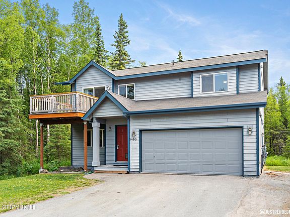 Rare find right here!!! Have you have been looking for your dream garage/shop?? Boasting a 32x42ft detached garage equipped with 2 natural gas garage heaters and a 16ft ceiling!! Double doors at 8ft/14ft height to house big toys! Owner is throwing in tall ladders to accommodate those ceilings! Enjoy a great west facing deck for our gorgeous Alaskan sunsets. Entails a second common living spaceon the main level with two bedrooms and a bathroom on each floor. Attached double car garage with a spacious driveway and plenty of parking for all your possible needs!! Quiet end of a road location. Come see this gem today, it will not last long!