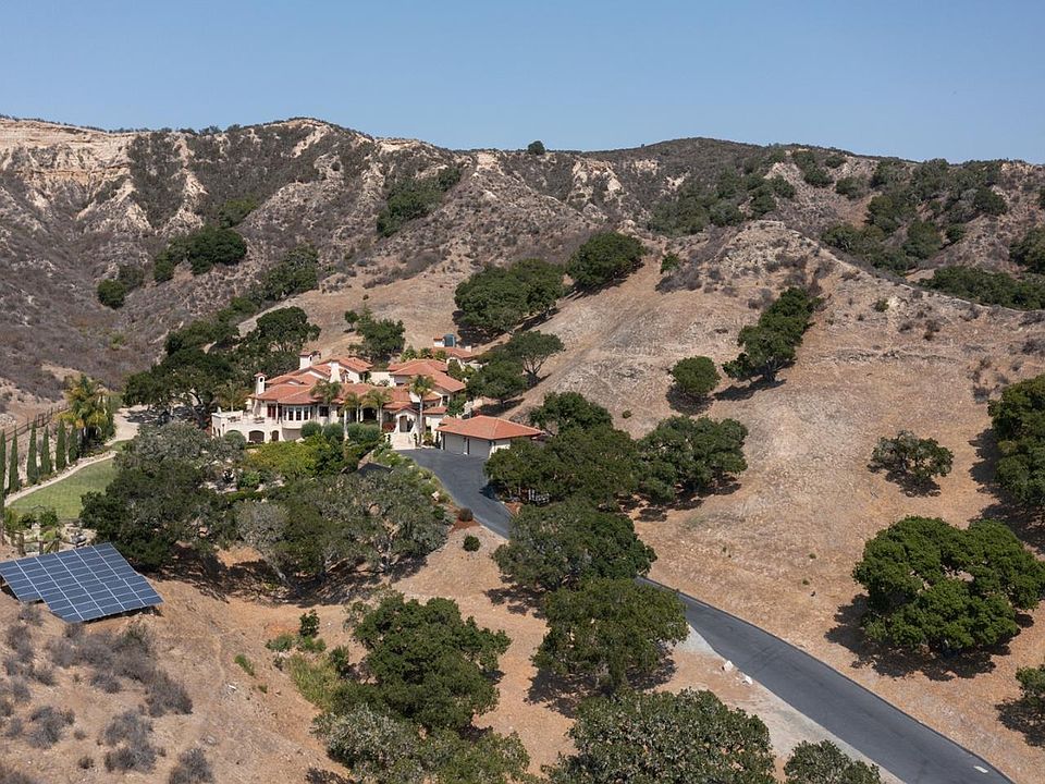 La Ventura, a private oasis behind the gates of Markham Ranch. This stunning Mediterranean style home is equipped to take you off the grid without compromising any comfort or quality. Situated on 10 acres, the property offers ultimate privacy and extensive custom features. The 5,685 sq. ft. main home features 4 en suite bedrooms, a generous master suite with attached office or possible 5th bedroom, formal living and dining rooms, gourmet kitchen w/ breakfast nook and adjacent family room. The home wraps around a thoughtfully designed and beautifully landscaped, multi-level patio which features a hot tub and pool; across the patio is a one bedroom guest casita. A separate outdoor space, offers a covered outdoor game room, sport court, sprawling lawn, fenced in vegetable garden with raised beds and bountiful orchard of fruit trees. An extensive solar system, backup batteries and two fuel generator, along with a high production well provides off-grid capabilities for this property.