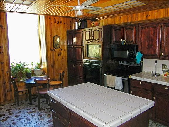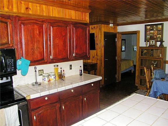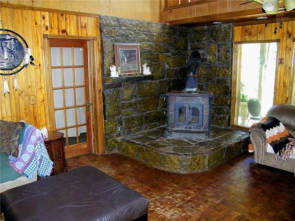 Looking for that secluded home in the country without leaving civilization? Take a look at this one. Custom built with comfort in mind. Two large bedrooms downstairs with full baths, large open kitchen / dining area with center island and a comfortable living room with wood burning stove in corner. there are 2 bedrooms upstairs complete with a walkway to the outside for lounging above the front porch. There is even a mud room/ laundry & storage in the back. Home has rustic wood throughout and a safe room located under the stairs. Small out building has electricity and water that would make it attractive as a hobby room, has window a/c. Let's now talk about the land. There is a nice sized garden spot for growing your own vegetables, several fruit trees and pens for small livestock or chickens. The wooded lot provides lots of shade. Large yard also features a homemade rock pool that affords you the occasional dip to cool off in the heat. Come take a look to see if it is for you!