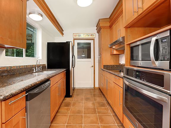 Updated Kitchen, Large Living Room with vaulted ceilings. Fireplace and an updated Bathroom on each floor. Possibly 2 Units, 3/1 upstairs and 1/1 downstairs - each with a separate entrance and parking. Neighborhood Description We have a driveway into the center of the block so mainly backyards surround us and we don't hear street noise. The neighbors are friendly and long term residents that look out for each other. Across the street is the community center and playground.