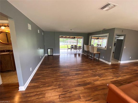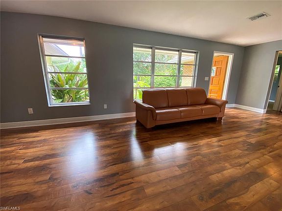 Rare riverfront rental in the Fort Myers Shore Located directly on the Caloosahatchee River this Gulf-River access property has .4 acres of the semi-private yard in a very sought-after neighborhood. This 1800 sq ft property has 3 bed 2.5 baths and has been remodeled and upgraded. This home features laminate wood flooring in the dining and living rooms and tiles throughout the rest of the house w/carpeted master and guest room 1. The 2nd guest room is tiled w/ it's own 1/2 bath and private entrance. The recently updated kitchen features Corian tops and stainless-Steel appliances and opens up into a large family room. Other features, fireplace, central vac, surround sound wiring, and speakers. $50 credit application per adult for the application process. The first month anda security deposit required. Only small dogs allowed with additional pet fees.