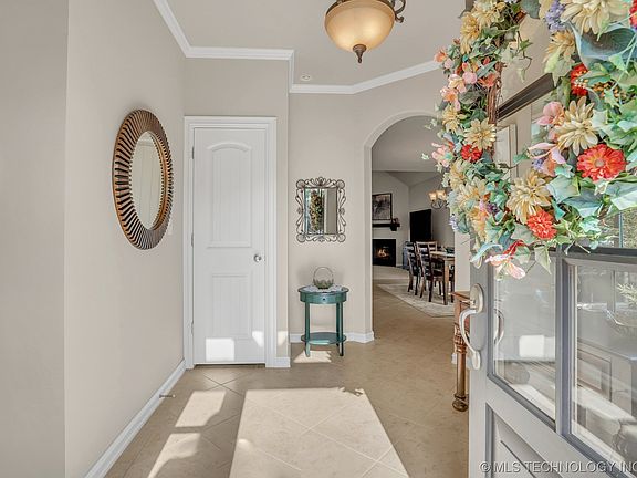 Welcome to The Auberge in Bixby, where luxury living meets a sense of community in this exclusive gated enclave. Nestled within this sought-after neighborhood, we present a delightful home that embodies comfort, style, and convenience. This meticulously maintained residence is a thoughtfully designed split floorplan that provides an ideal blend of privacy and open living space. With 2 bedrooms, this home is perfect for a small family or those looking to downsize without compromising on quality. Outside, experience a captivating oasis with absolutely beautiful flowers and meticulously manicured landscaping that adds a touch of nature's beauty to your daily life. You'll find yourself drawn to the covered patio area, perfect for relaxing afternoons. The flagstone backyard requires minimal maintenance, allowing you to spend more time enjoying your outdoor space rather than tending to it and you'll have even less to worry about since the HOA takes care of the yard mowing. As a resident of The Auberge, you gain exclusive access to the fantastic amenities the neighborhood offers. The clubhouse provides a gathering place with friends or choose to relax at the beautiful pool. This home presents an incredible opportunity to embrace a lifestyle of comfort and luxury. Its combination of convenient features, beautiful surroundings, and exceptional school district make it an ideal place to call home. Don't miss your chance to own this slice of heaven in Bixby's premier gated community.