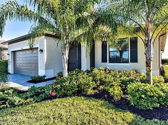 Affordable, resort style living in beautiful Portico with community pool, pickleball, tennis & basketball courts, and so much more. This charming, 3-bed, 3-bath home, built in 2018 has all the features you desire. Amazing kitchen with stunning cabinets, large island, modern fixtures, and beautiful counter tops. Wide-open living space is perfect for your growing family or friends to gather. Massive primary suite with walk-in closets & closet, his and her sinks, seperate shower and tub, and tons of natural light. Convenient, in-residence laundry room and 2 car garage. Covered lanai in the back with views for days and room for your grill and seating area as well as unobstructed lake view from out front. You will love this home and neighborhoodc- Living at Portico is truly like being on vacation -- state-of-the-art fitness center to keep your body fit and energized, heated pool to frolic in or swim laps no matter the outside temperature, and the clubhouse to hang out with friends and neighbors.