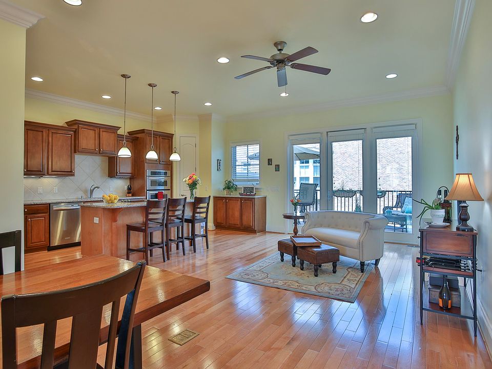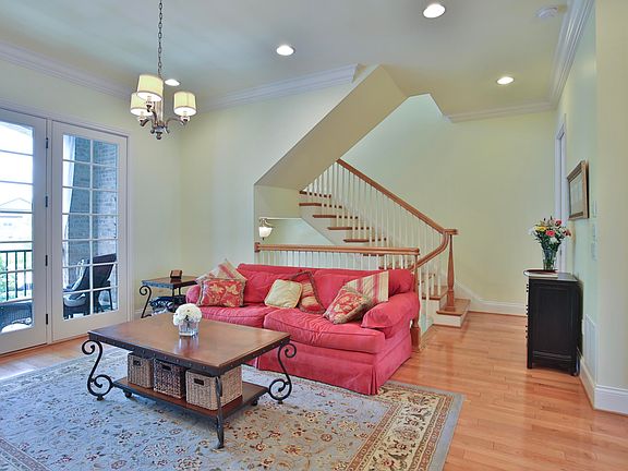 BACK ON MARKET DUE TO FINANCING. Beautiful townhome with open floor plan in desirable Signature Point. The main floor features gleaming hardwood floors, 10 ft ceilings with crown molding and fresh paint. The living room has built ins, gas fireplace and French doors to a covered balcony. There is a formal dining room and the eat-in kitchen has enough room for a table and seating area. There are stainless Kitchen Aid appliances including separate oven and convection oven, warm wood cabinets, island/breakfast bar, granite counter tops, under cabinet lighting, 2 pantries and access to the deck. Between the 2nd and 3rd floor is an alcove perfect for a reading nook. The large master bedroom will fit your king sized furniture, master bathroom with jetted tub, separate shower, dual vanities, separate toilet area and walk-in closet. The laundry is located on the same floor along with two other bedrooms and a full bath. The 1st floor has access to the garage and a large bedroom, that could also serve as a home office or additional den and includes French doors to a private patio. There is also a central vac and security system. Close to schools, shopping, restaurants, The Parklands of Floyds Fork and interstates. The community includes clubhouse with pool table and lounge, swimming pool, exercise room, hot tub and dog park!