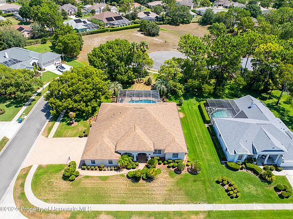 Executive-Style Home located in the Gated Community of Silverthorn Country Club! This Meticulously-Maintained Home offers 4 Bedrooms, 3 Full Baths, Side-load 3 Car Garage, Over-sized Lanai, featuring Paver Bricks and Free-form Pool. The open floor plan also includes a separate Formal Living Room, Elegant Dining room with chandelier, over-sized Family Room and large Kitchen with abundant Cabinets and Counters, convenient Center Island, Breakfast Bar, and Breakfast Nook. The home encompasses 3031 SF Living and 4489 SF Total. Various interior highlights includes easy-maintenance engineered hardwood flooring, coffered trey ceilings and crown molding in numerous rooms. Exterior highlights includes 2015 ROOF, 2014 HVAC (2 Rheem Units), 2008 Hurricane Protection Panels, dug well for irrigation and lush landscaping. Silverthorn HOA dues also includes: Upgraded Cable with free DVR box and DVR service and High-Speed Internet! Silverthorn's amenities offer the Community Center Complex, complete with pool, tennis and pickleball courts, fitness center, playground, etc. Silverthorn Community also offers an 18-hole Golf Course, Clubhouse with Legends Restaurant, and Banquet Facilities. Local shopping and support services along Spring Hill Drive and Cortez Blvd (Rt 50) are within minutes. The Suncoast Parkway, also located within minutes, offers easy access to Tampa International Airport. Silverthorn's convenient location in ZIP CODE 34609 may also show as Spring Hill OR Brooksville. CALL TODAY TO SCHEDULE YOUR APPOINTMENT!