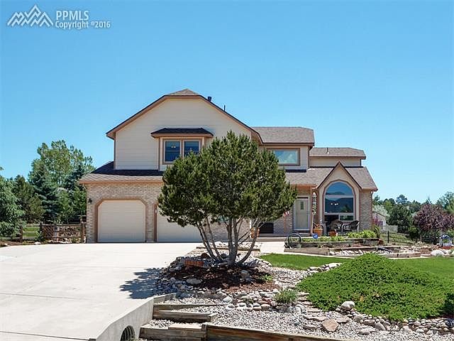 This amazing home has so many great features, it is hard to list them all. Gorgeous views of Pikes Peak from your front porch sitting area, new class 4 roof, extensive hardwood and tile on the main floor, 5 bedrooms all over-sized, 2 bedrooms in addition to master have walk-in closets, upgraded window blinds, built in bookshelves in master bedroom and great room, granite counters in kitchen with lots of counter space, under-cabinet lighting, pantry, double sinks plus additional prep sink on breakfast bar. 3 built-in china cabinets, large gas fireplace in family room, formal dining room and separate kitchen nook, wet bar in large rec room, upper level laundry room plus option for laundry plumbed in over sized lower level bathroom, double garage with workshop alcove, built-in storage shelves in basement storage room and in garage, large shed with electricity, shelves, and 2 windows that could be used as a workshop, large flagstone patio with pergola off family room, patio adjacent to front porch, landscaped outdoor entertainment area in side yard, new sprinkler system, main floor office with french doors, security system, ceiling fans, and window seats! What else could any buyer want?