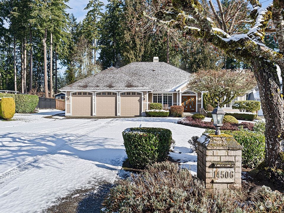 Spacious and stately one-level home in a desirable neighborhood on a lush ½-acre lot. Double entry doors open to a grand foyer, a den with French doors, gleaming hardwood floors, a large formal living w/gas fireplace, and a formal dining area. The gourmet kitchen features an eating area and French doors leading to a beautifully landscaped backyard w/shop & tree house. The family room boasts built-in cabinetry and a gas fireplace. The expansive primary suite includes a huge walk-in closet and a luxurious 5-piece bath. A circular driveway, 3-car garage, and RV/boat parking pad provide ample space. This home is wired for a generator and includes A/C, a speaker system, a built-in vacuum, and a sprinkler system for effortless maintenance.