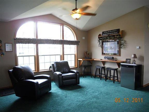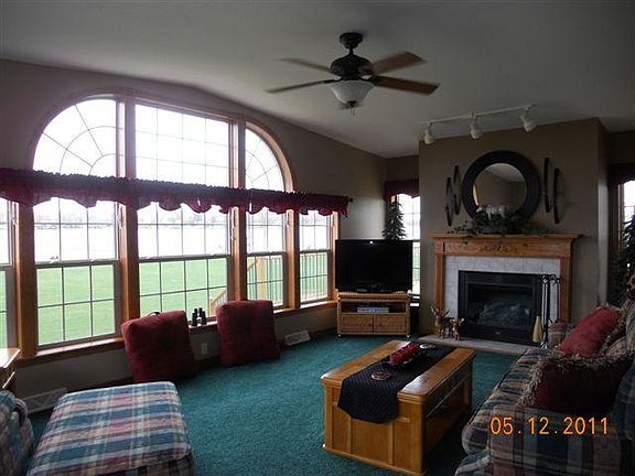 Gorgeous lot with 1.77 acres and 195' of natural sand beach on the south shore of Maple Lake. Beautiful 2002 manufactured home has many upgrades. Open floor plan; extended family room with gas fireplace; master suite faces lake with patio door unto deck. All oak woodwork throughout. Large cedar deck across front of home. 40 x 48 metal garage built 2006. Includes dock.
