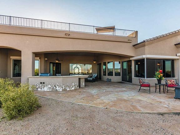 Scottsdale 5 Acre estate located in the scenic Rio Verde Foothills! As you enter through the large iron front door with light filtering glass this incredible 5,132 sq. ft. home features 5 bedrooms, 5.5 Bath's plus a huge bonus room that gives you options for other uses and there is also a bonus kids play room. There is no shortage of panoramic view from the placement of the large windows in this house and East facing windows have electric security roll down shutters.