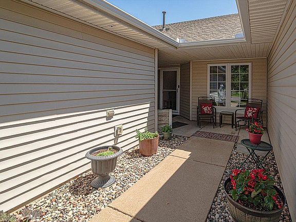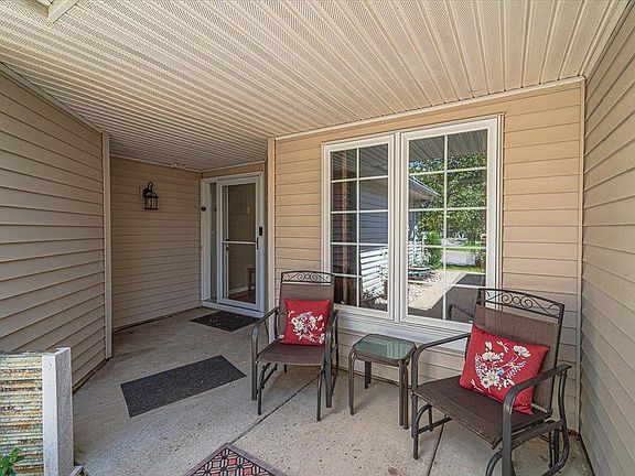 This 2BR 2BA one-level living townhome is open and bright, and offers a maintenance-free exterior so you can simply lock up and go! The vaulted, open main floor includes a family room with a gas fireplace, and a vaulted four-season sunroom, both with with new LVP flooring. The kitchen has white cabinets, a pantry, and ceramic flooring, and is open to the dining space. The generous primary suite features private 3/4 bath and a walk-in closet with organizers. Another full bath lies near the second bedroom. Relax on either the patio just off the sunroom, or tucked under the covered front patio. Don’t forget to check out the garage, complete with finished walls,newer floor, additional outlets, storage and bright LED lighting! The neighborhood of one-level homes is located within 2-3 minutes of shopping, restaurants, grocery stores and fitness centers. Home Warranty!