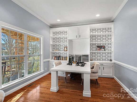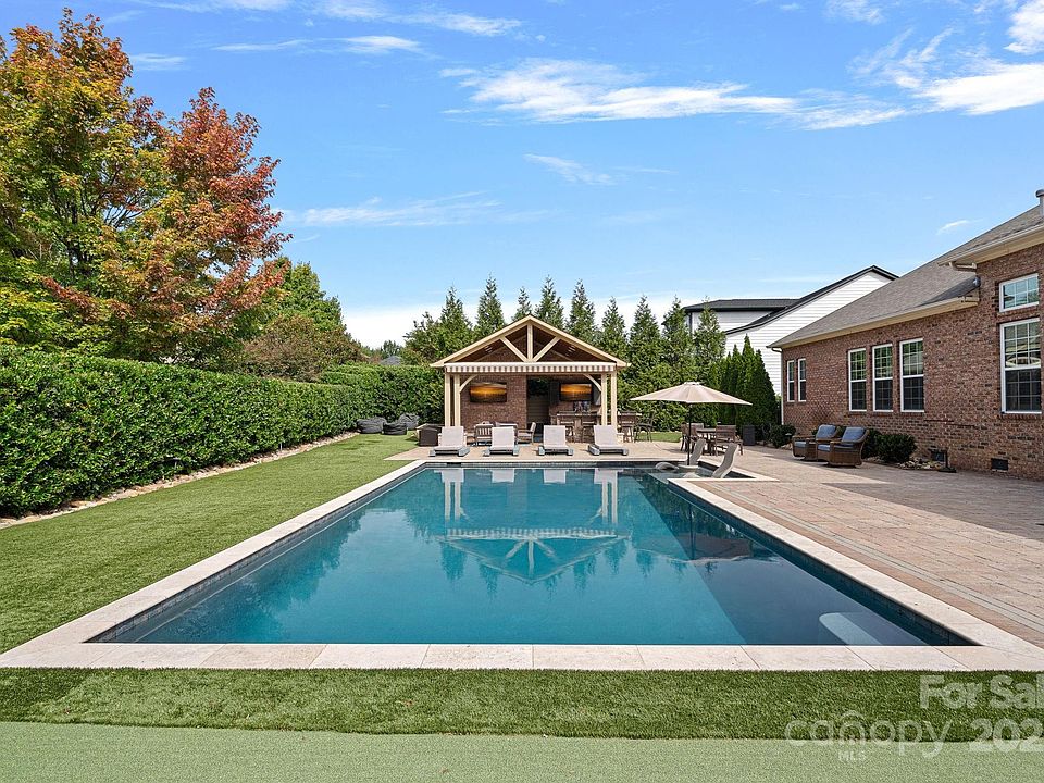 This beautiful 5-bed, 4-bath home is nestled in the coveted "Estates" section of Vermillion in the heart of Huntersville! It features a 3-car, side-load garage, a covered front porch & a screened back porch that opens to a private backyard oasis with a saltwater pool, putting green, and covered cabana. The cabana includes, a retractable awning, a shower, half bath, and an outdoor kitchen with a built-in grill, Green Egg smoker, dishwasher, and two refrigerators. The backyard also boasts artificial turf, surround sound & landscape lighting. Inside, the two-story foyer leads to a chef’s kitchen with SS appliances, a gas cooktop, wine fridge, and massive quartz island that flows seamlessly into the breakfast area and two-story great room. The main level also includes a guest room with a full bath and an office with French doors. The spacious primary suite features a bath with dual sinks, garden tub, and tiled shower. Upstairs, you'll find three additional large bedrooms and a bonus room.