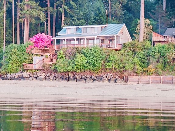 A TRULY RARE Puget Sound waterfront gem on Anderson Island! This beautifully updated low-bank retreat is perfectly poised at the water's edge w/102' of frontage, unobstructed Sound views, and tidelands. Step out your door and you'll easily access the beach via the well-built multi-level deck and stairs. Boaters will covet the permanent mooring buoy with pully system. The newly-remodeled interior is beautifully finished with wood-lined ceilings, ceramic tile floors, & new custom cabinetry. Enjoy stunning water views from every room! Additional tax parcel included. Primary bedroom on main floor w/dual closets. Upstairs loft bedroom has ample space for an office or lounge. Your forever home or vacation oasis awaits on the Shores of Outer Bay!