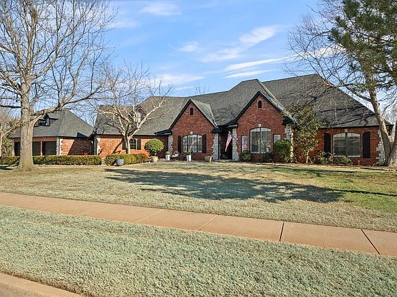 Fabulous Estate that sits on a 1 Acre Wooded Creek Lot. Location is close to Kilpatrick, Shopping, Dining, Costco/Chisholm Creek area. This 4 bed, 4 bath, study, 3 living home is wonderful with large open windows and 2 sets of New sliding doors that open up to large patio overlooking creek. Kitchen has been completely remodeled, took out walls and opened up, Large island that is the HUB of the house. All new quartz and beautiful backsplash, top of the line Stylishs Cafe' Appliances. Den with fireplace has wet bar. Nice spread out floor plan. All bedrooms are generous in size and large study. New Carpet in 2 bedrooms. Off the bonus room there is a large mudroom/utilty. Neighborhood has Pool/Park and Edmond Schools right across the street. Wonderful sought after neighborhood that has great location perfect for an active lifestyle. Truly is a diamond in the ruff, sitting on an acre right in the middle of town. NEW ROOF/ GUTTERS/ EXTERIOR PAINT! This house is Fabulous!