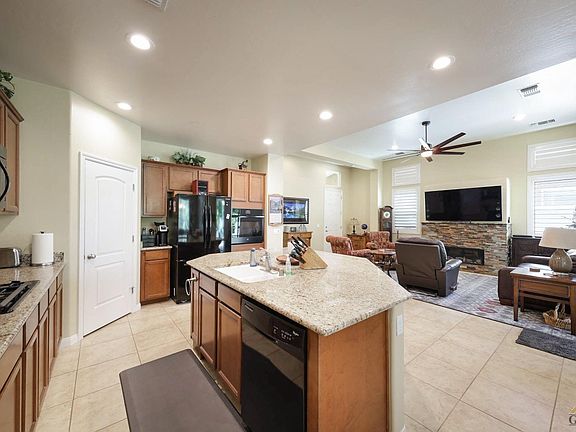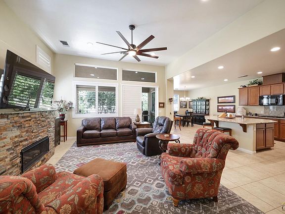 Welcome to the gated Village Green community! Here's your chance to own this beautiful home with OWNED SOLAR, 4 beds, 2 baths, great room with newer radiant heat fireplace. The kitchen has granite countertops with a new BT convection oven. Primary bedroom is spacious with a walk-in closet, dual sink vanities and walk-in shower. There are two additional bedrooms, a full bathroom and laundry room. Additional items upgraded: recessed lighting, cabinets, ceiling fans, sunshades, overhead storage in garage, rain gutters and whole house water purification system. Get your green thumb ready! Outside you will find a gorgeous garden of trees, roses, tomatoes, etc. Some trees included are plum, avocado, peach, orange, fig, nectarine and apricot enclosed with vinyl fencing. There is also a storage shed. Artificial grass in the front yard with lemon and lime trees. Don't forget about the community pool, park, water features and BBQ's. Make your appointment to see your new home today!