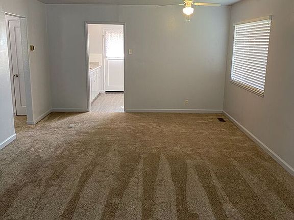Fabulous 3 bedroom 1 bath single family home. The kitchen has new granite counters, cabinets and sink which features garbage disposal. There is a new gas stove, New carpet in all the bedrooms, living/dining area and laminate flooring in kitchen and bathroom. There is also a fireplace in between Living/Dining area. Washer hook up. A dryer has been left at the property, no warranty. 2-car garage and a front and large backyard with areas for your vegetable garden.