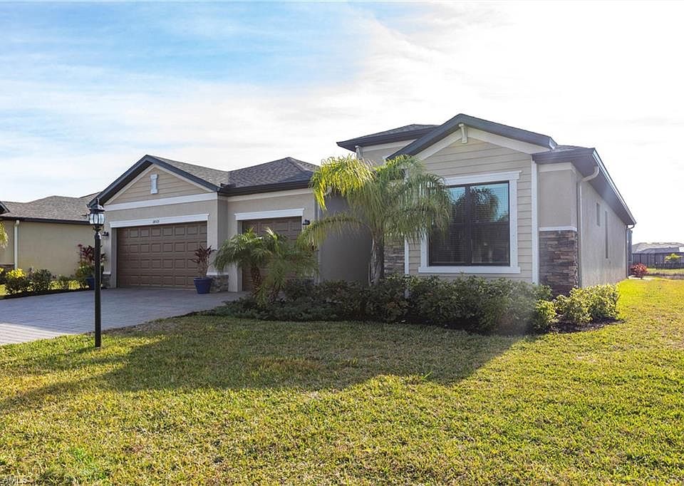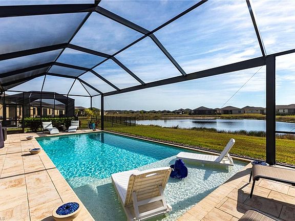 DREAM HOME ALERT!! STUNNING POOL RESIDENCE W/BEAUTIFUL LAKE + NATURE VIEWS, IMMACULATELY CLEAN (PET FREE + SMOKE FREE), COMES WITH ALL THE BELLS AND WHISTLES! BEAUTIFUL SUMMERVILLE II MODEL BY LENNAR W/3-CAR GARAGE AND A LONG LIST OF UPGRADES! Some furniture items could stay (negotiable), this gem is ready for you to move-in + enjoy your very own piece of SW Florida paradise! Welcome to this well-maintained, modern smart home, built 2022, feat. an inviting foyer w/double glass insert entry doors, tile throughout, 3 bedrooms, 3 bathrooms, an extra den/office, located on an oversized lake front lot in the beautiful Portico community in Fort Myers! GREAT BUYING OPPORTUNITY, builder is sold out of 3-car garage homes in Portico! OPEN FLOOR PLAN, perfect for family living and entertaining. The heart of the home is an expansive great room w/tall glass sliding doors, for lots of natural light. The living room w/crown molding + tray ceiling seamlessly connects with the spacious formal dining area and the gourmet kitchen, which features white cabinets w/above + under cabinet lighting (multicolor), granite countertops, large island, upgraded stainless-steel appliances + walk-in pantry. The luxurious owner’s suite has crown molding, tray ceiling, sliding doors for direct lanai access, two large walk-in closets and an ensuite bathroom w/dual vanities and large walk-in shower. Two additional bedrooms, each with own private bathroom, are generously sized, offering flexibility for guests, or a hobby room. Especially if you’re working from home, you will love the separate den w/French Doors. A laundry room w/sink is also located inside the residence, for your convenience. Outdoor living is a delight in this home, with a spacious covered lanai area that overlooks the extended pool deck and your custom 32x14 ft pool w/sun ledge, electric heater, salt water system + lighting. The pool area is fully screened-in, feat. a large panoramic screen window for unobstructed lake views. Enjoy magic sunrises and swimming + splashing fun all year round in your new private outdoor oasis! This amazing property truly stands out due to the MANY FURTHER UPGRADES that the owners have added, which are YOUR GAIN! Those Upgrades include upscale light fixtures + multiple ceiling fans w/lights (incl. lanai), garage w/epoxy floor and two 8 ft hanging racks for additional storage, kitchen backsplash, additional electrical outlets in the lanai + pool area, gutters, beautiful landscaping. Start packing and get ready to enjoy a truly laid-back lifestyle in your new pool home in sunny SW Florida! NO FLOOD INSURANCE REQUIRED! PORTICO is a highly sought-after access-controlled community w/Low HOA fees. Residents enjoy resort-style amenities, including a clubhouse, community pool, gym, yoga/exercise room, tennis, pickleball, basketball + play area. Pets, Fences & LSVs permitted! Great location, short drive to I-75, shopping, dining & more!
