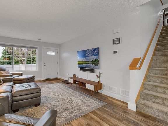 Thoughtfully updated 2 bed/2 bath townhome at Rolling Ridge Estates, in a convenient location with easy access to Hwy 10. Enjoy maintenance free living while the HOA handles snow removal and lawn/grounds care. Bright, well-maintained home with plenty of room on the main level for entertaining your family and friends. Upstairs you'll find a spacious primary bedroom with large walk-in closet, a full laundry room with convenient sink/cabinets and Whirlpool washer and dryer. Double vanity and generous linen storage in walk-thru primary bath, 2nd bed with two separate closets. Plus a terrific bonus loft area for a home office. 2 car insulated and heated garage with epoxy flooring, plenty of storage space throughout the home and garage! New SS kitchen appliances in 2017, new Whirlpool ceramic cooktop range in 2020. NEW furnace AND A/C in 2020. New roof, new gutters, and LVP flooring on main level in 2021. Such a great home!