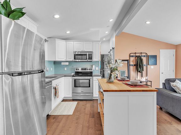 OPEN SATURDAY 3/8, 12-2PM. Well-maintained and thoughtfully updated one-level ranch on a quiet street with spacious front and back yards. Remodeled in 2019 and continually improved, this home has seen recent updates, including new exterior paint, an efficient mini split system, and a newly poured back patio. The private backyard is a great space for relaxing or hosting, complete with a smokeless fire pit, new fencing, and arbors. An attached garage and recently added carport offer extra parking and storage. Situated in a well-established neighborhood, the house offers a practical layout with modern updates and a peaceful retreat from the bustle. The home is a short drive to Powell Butte Nature Park, shopping, and everyday conveniences, with easy access to the MAX light rail for seamless commuting—a comfortable and well-cared-for home ready to be enjoyed for years to come. [Home Energy Score = 1. HES Report at https://rpt.greenbuildingregistry.com/hes/OR10078452]