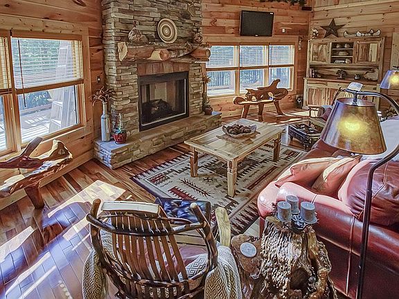 THE PERFECT SMOKY MTN HOME ON 17.48 PRIVATE ACRES...LIVE HERE FULL TIME, OR MAKE THIS YOUR 2ND HOME, OR AS AN INVESTMENT PROPERTY - THIS BEAUTIFUL 3,278 SQ FOOT LOG HOME HAS ALWAYS BEEN A PRIVATE 2ND HOME / GET AWAY BUT WOULD DO WELL ON A RENTAL PROGRAM AND WITH 5 ADDITIONAL LOTS THAT COULD BE FUTURE HOME SITES (POWER BOXES ALREADY INSTALLED) UNDERGROUND UTILITIES, THE POSSIBILITIES ARE ENDLESS! FROM THE MOMENT YOU ENTER THE PROPERTY AND MAKE YOUR WAY UP THE WINDING DRIVE YOU WILL NOTICE AN ABUNDANCE OF NATURE AT IT'S FINEST! PLENTY OF PARKING AS YOU MAKE YOUR WAY TO THIS MAGNIFICENT HOME...STEP ONTO THE 46' COVERED FRONT PORCH, AND NEXT INTO THE SPACIOUS GREAT ROOM WITH SOARING CATHEDRAL CEILINGS, LIVING AREA FEATURES A 23' STONE FIREPLACE WITH A MANTLE HANDMADE FROM A TREE ON THE PROPERTY AS WELL AS ALL COLUMNS AND STAIR POSTS, OPEN DINING AREA SEATS 10, A CHEFS KITCHEN WITH ALL APPLIANCES INCLUDING A 6 BURNER GAS RANGE, BREAKFAST BAR, PRIMARY ENSUITE ON THE MAIN WITH SPACIOUS BATH (WALK IN SHOWER AND JETTED TUB) AND ACCESS TO HOT TUB/SCREENED PORCH, POWDER ROOM / LAUNDRY ROOM, 320 SQ FT SCREENED PORCH ON THE MAIN. FLOORING ON MAIN AND UPPER LEVEL IS BRAZILIAN TIGERWOOD, UPSTAIRS TO A LOFT / BALCONY OVERLOOKING THE GREAT ROOM WITH POOL TABLE, 2ND ENSUITE THAT MIRRORS THAT ON THE MAIN WITH ENTRANCE TO A PRIVATE 8x10 DECK, OFFICE NOOK WITH ACCESS TO A PARTIALLY COVERED FRONT DECK (320 FEET) DOWNSTAIRS TO A 24' DEN / ENTERTAINMENT ROOM WITH SOUND SYSTEM, LOWER LEVEL ENSUITE WITH ACCESS TO THE 40' PATIO, 2 ADDITIONAL BONUS ROOMS WITH A 4TH FULL BATH. THIS LOG HOME IS A MUST SEE WITH THE BEAUTIFUL FURNISHINGS AND ATTENTION TO DETAIL! 1,081 SQ FEET OF COVERED OUTSIDE SPACES AND 840 SQ FT OF OPEN DECKING, SO MUCH TO SEE ON THIS 17.48 ACRES...WOODS, TRAILS, A STREAM - THE ADVENTURE AWAITS! PLEASE SEE OWNERS LIST IN ASSOCIATED DOCUMENTS AND PLEASE VIEW VIDEO