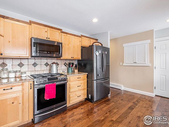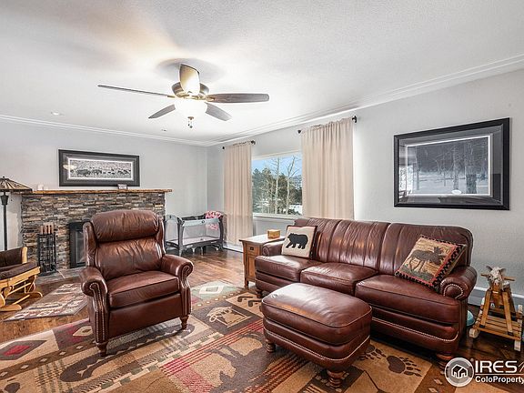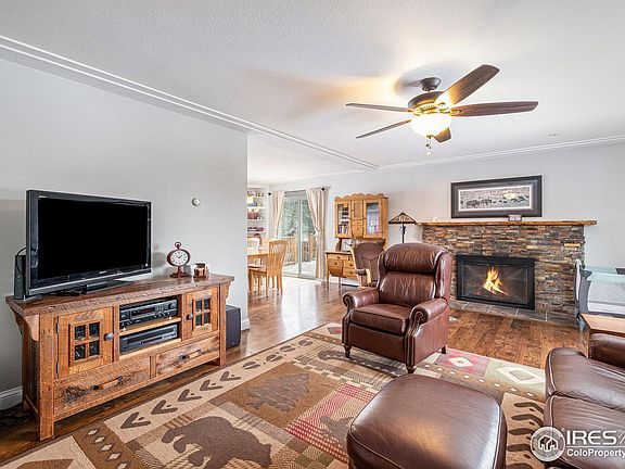 Beautifully updated ranch style home in Estes Park, CO. 4 bedrooms and 3 bathrooms. Main level features open floor plan with all new hickory flooring throughout. Spacious kitchen has granite counters and stainless steel appliances and opens to a patio out back. Separate dining room has slider to a private deck. Living room with lots of windows and fireplace. Primary suite has walk in shower and is finely finished with granite and tile. 2nd bedroom has built ins for extra character, opens to the patio and has full bath across the hall. Lower level is a daylight basement and is set up for a separate rental/living space. Open floor plan includes full kitchen plus large space for living and dining area with a fireplace. 2 bedrooms and 1 full bath plus private entrance through the attached 2 car garage. Sits on a fenced .91 acre with pergola, close to downtown Estes Park and schools, miles of walk/bike paths just outside your back door. Take a look today, no HOA fees to worry about!