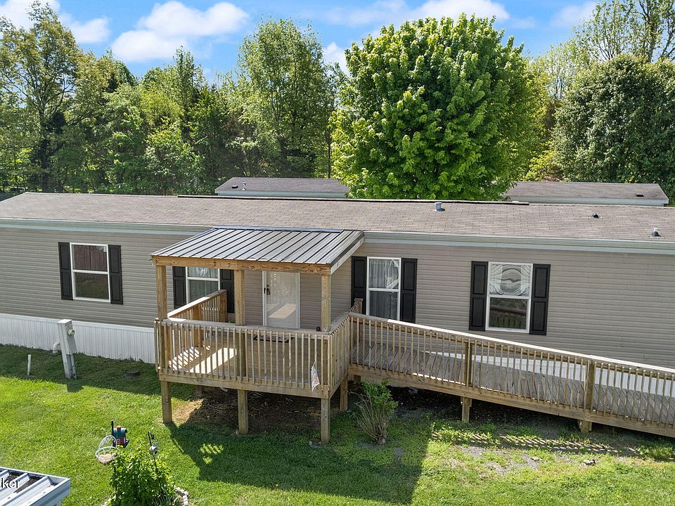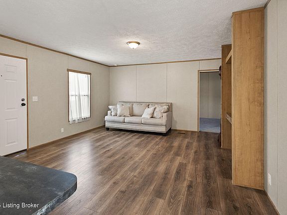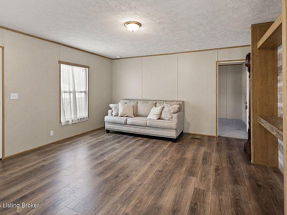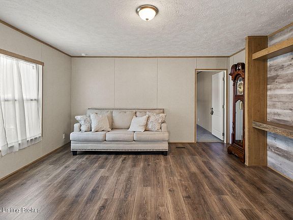 Welcome to the 2021 Clayton Maynardville Classic 66 manufactured home, a charming abode nestled in the serene surroundings of Rineyville. Boasting three bedrooms, two full baths, and a cozy 1056 sqft. of living space, this single-owner residence offers comfortable living with a touch of elegance. Upon arrival, you're greeted by a spacious covered front porch, perfect for enjoying your morning coffee or unwinding after a long day. Step inside to discover a meticulously maintained interior, adorned with modern finishes and ample natural light, creating an inviting atmosphere throughout. The heart of the home lies in its well-appointed kitchen, complete with all appliances included, making meal preparation a breeze. Adjacent to the kitchen, you'll find a convenient washer and dryer, ensuring laundry day is both efficient and stress-free. All furniture and appliances will remain in the home. The thoughtful layout features a private master suite separate from the two additional bedrooms, providing a peaceful retreat to relax and rejuvenate. Both full bathrooms offer convenience and comfort, equipped with all the essentials for daily routines. Stay comfortable year-round with central heating and air conditioning, ensuring optimal temperatures regardless of the season. This home exudes a sense of tranquility, situated in a small, quiet, and well-kept mobile home park, where neighbors become friends and community thrives. Whether you're starting a new chapter or seeking a peaceful retreat, the 2021 Clayton Maynardville Classic 66offers the perfect blend of comfort, convenience, and charm in the heart of Rineyville.