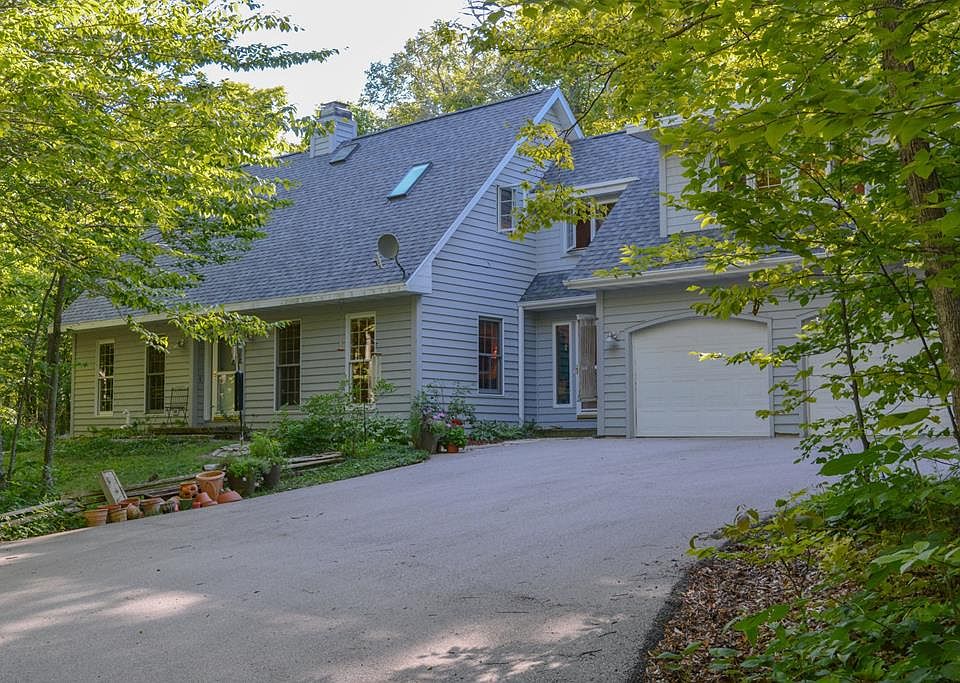 Within a lovely wooded setting in the picturesque Garrett Bay neighborhood, this inviting Cape Cod-style home provides a restful, elegant retreat. The huge living room is flanked by large windows and a gorgeous fieldstone fireplace. The floorplan also features a breakfast room and dining room, a laundry/half bath, kitchen with center island, and a year-round breezeway space that doubles as a studio. Upstairs, are two huge, wonderful, airy bedrooms -- a master suite and a guest room with a pass through room for additional sleeping area, plus a loft and guest bath. The home has been recently re-stained and re-roofed among a long list of other improvements. Spectacular setting near shore access and across from Door Bluff Headlands County Park.