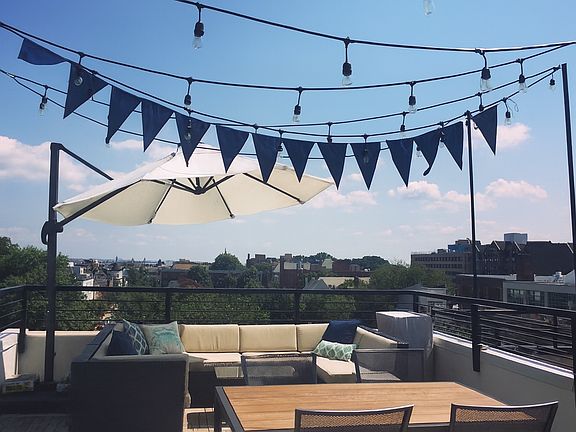 Welcome to your home in this luxury, one-of-a-kind, two-level penthouse in a prime location with a *private roof deck*! This stunning 2 bed/2 bath unit in a newly renovated row home boasts an expansive 400 sq ft roof deck oasis that offers panoramic views of the Washington Monument and Capitol. The outdoor space comes furnished with sectional seating and string lights to create the perfect ambiance for morning coffee, sunset cocktails, or an evening with friends. Even on the hottest summer evenings, the rooftop catches a comfortable breeze. Inside, 12' ceilings with floor-to-ceiling windows await you! The living room is outfitted with an enormous 75" wall-mounted HD TV, perfect for binging Netflix or watching sports. The fully updated kitchen complete with chef-style stainless steel appliances and a gas range is fit for a master chef. The expansive master bedroom has large, south-facing windows on a quiet street and is complete with a spa-like en-suite bathroom. Premium in-unit washer/dryer included. This unit is also accessible through a keyless backdoor entryway leading to your dedicated, no-hassle parking space (included in price). Though you won't want to leave this condo, this unit sits on a quiet, one-way street, and within a 3 block radius, you have access to the Metro, multiple bus lines, Capital Bikeshare docks, Meridian Hill Park and Target. This condo is steps away from Harris Teeter, Giant, Street's Market and Trader Joe's. There are a plethora of award-winning restaurants to be found within Columbia Heights itself, as well as Adams Morgan and Mt. Pleasant, which are just two blocks away. Pets considered on a case-by-case basis. Minimum 12 month lease with option to extend. Water and gas included in price, tenant responsible for electricity, internet and cable. Parking included in price.