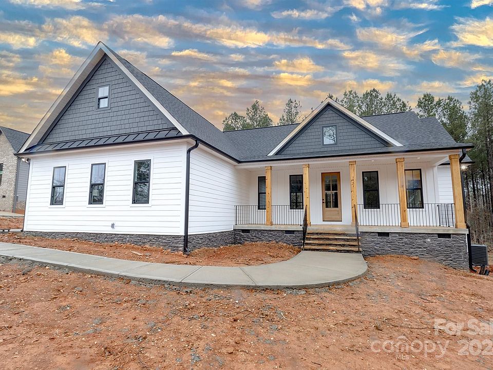 Beautiful new home in Royal Pines Subdivision. This new construction home features 4 bedrooms and 3 full bathrooms on a 1-acre lot. The living room has a vaulted ceiling with a shiplap and tile fireplace with a gorgeous shaker style kitchen sharing the area. The kitchen has all GE Stainless Steel Appliances, quartz counters and a large island. The kitchen overlooks a large covered rear porch. The primary suite has a large walk in closet, tile shower, freestanding tub, dual vanities with modern plumbing fixtures. Two bedrooms are located on the opposite side of the home that share a tile bathroom. The fourth bedroom is located upstairs with it own bathroom and walk in closet. Large bonus room off of upstairs bedroom