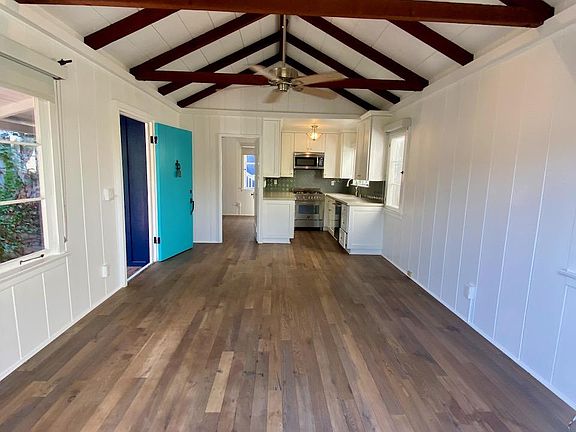 Fabulous vintage detached cottage in the heart of Laguna Village. Private landscaped yard, all new windows, all remodeled/ upgraded inside, newer bath, newer kitchen, newer hardwood floors, Two ceiling fans. The kitchen has under counter refrigerator and freezer drawers, stainless steel dishwasher, Bertazzoni stove, microwave, and quartz counters. High open beam ceiling, french doors open to a wood deck that extends the living area into the spacious and private front yard. A white picket fence and gate welcome you into the yard, and a brick front porch leads to the front door. Every inch of space has been re-designed for maximum use of the square footage. Private laundry, and a 2 Car Private Garage are included. All new paint sets this house apart from the neighbors. A special space for creative use. Owner pays water, gardener and trash service. Tenant pays gas, electricity, cable, wifi. No pets, no smoking. 2 car private garage.