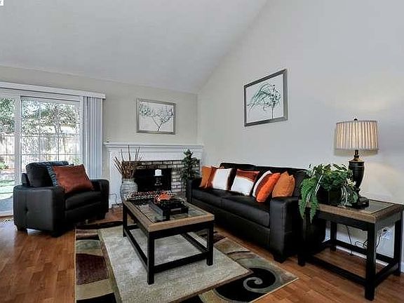 Beautiful single-family home in Fremont’s Parkmont neighborhood. 3 bedrooms, 2 bathrooms & attached 2-car garage with washer & dryer. Approx. 1,397 sq. ft. of living space. Situated on lot of approximately 5,673 sq. ft. Living room features wood-burning fireplace with brick surround & mantel, vaulted ceiling and sliding glass door leading to backyard. Dining room offers lighted ceiling fan and picture windows for natural light. Lovely kitchen boasts tile countertops, white cabinetry, tray ceiling with recessed lighting, picture window overlooking backyard and built-in appliances including electric range, microwave and dishwasher. Spacious master suite has large sitting area, mirrored closet doors, stunning granite vanity and stall shower with sliding glass doors. Additional bedrooms with hardwood flooring and picture windows. Upgraded main full bathroom with shower over tub, granite vanity. Charming backyard features lush lawn and patio, surrounded by various trees. Close to Parkmont Elementary School.