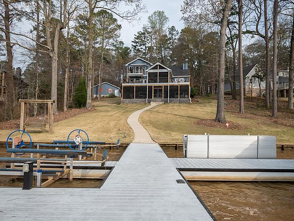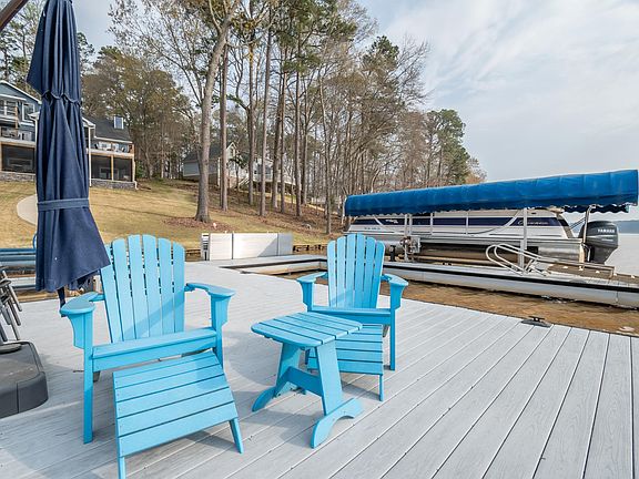 Beautiful fully furnished lakefront home for your family to enjoy this lake season! Enter the home to a spacious open concept kitchen, dining, and large living space. Enjoy two open air decks and a screened in porch. Out the glass doors you will find big lake views and areas that are ready for outdoor dining, an evening fire or great conversation. The main floor also has a master suite with a king sized bed and attached full bathroom. Head upstairs to the expansive owner's suite with tv and sitting area along with his and hers walk in closets. The ensuite includes double vanities, spa tub, and walk in shower. The owner's suite also hosts a private deck through French doors. A second bedroom with two twin beds and a full bath are also located on the second floor. In the basement, you'll find a second living space with a large TV and children's play area. There is also a bedroom with a king sized bed and bunk beds in a separated space which connects to another full bathroom. A second screened in porch, accessible through the basement living area that expands the length of the home and is perfect evening lake views and rainy day games. The dock features a covered boat lift, boat slip, and two jet ski lifts all ready for a season of fun! Additional amenities include grill, Big Green Egg, Peloton (must use your own membership), detached large 2 car garage. 6 or12 month leases available. Utilities are the responsibility of the tenant. We will consider pets with an additional deposit.