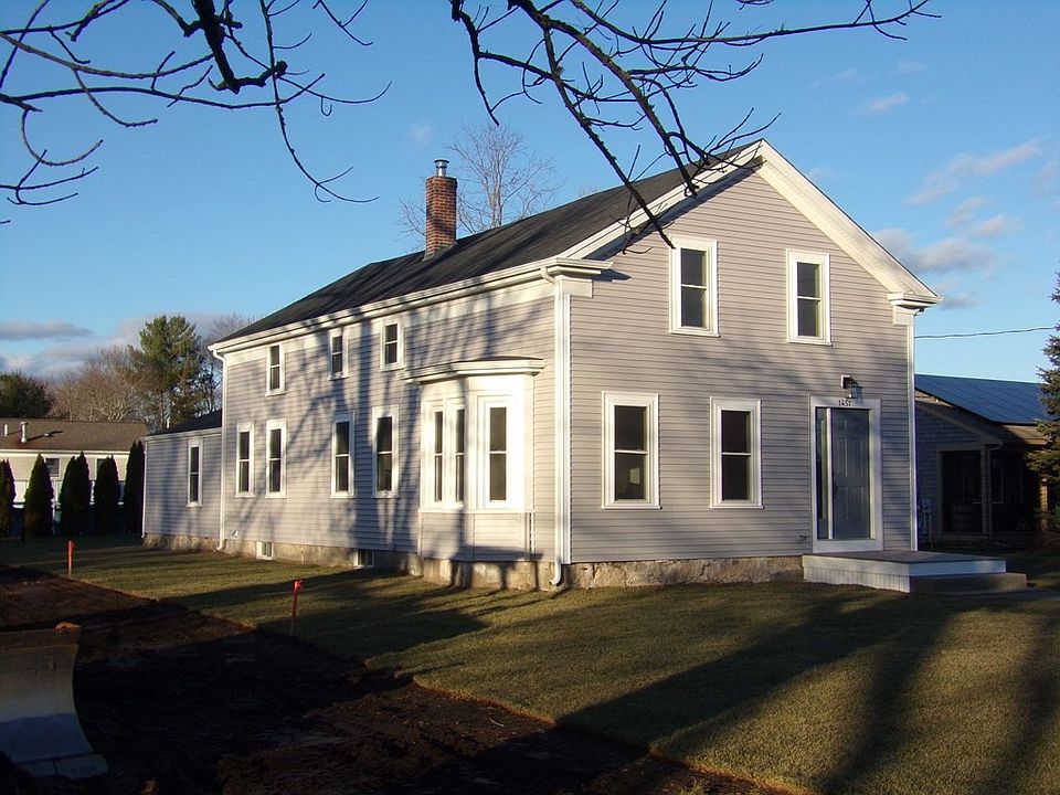 This beautifully renovated Circa 1855 home features a lovely foyer with original stairway and hallway as you enter the front door. It offers original refinished hardwood floors throughout. There is a spacious double living room, a dining room with a built-in cabinet, original arch moldings, vintage radiators, a brand new kitchen with an island, granite counter tops, new appliances, a spacious pantry and a storage area. There is a full bathroom with a laundry area including a brand new washer & dryer on the first level and a bedroom that can also be used as a home office. The stairway leads to 3 additional bedrooms, another full bathroom, a common area and a hallway. The exterior has a new roof, siding, windows, and doors. There is also a brand new septic system, off street parking, and the entire yard looks great. Situated in a nice neighborhood. Easy access to Rt. 140 and 195 Must See.