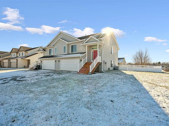 Welcome to this beautiful 3 bedroom, 3 bathroom zero lot home located in a highly desirable and convenient Coralville location! This home boasts an abundance of natural light and features neutral paint throughout, creating a warm and inviting atmosphere. The kitchen features stainless steel appliances, stylish cabinetry and a large breakfast bar. The open concept design has bamboo flooring on most of the main level and vaulted ceilings creates a spacious and airy feel, perfect for entertaining guests. The living room is enhanced by a cozy gas fireplace and a sliding door that opens up to a deck overlooking the fenced-in backyard, providing a serene outdoor space for relaxation. The primary bedroom offers a private bathroom and a walk-in closet, providing a peaceful retreat. An additional bedroom and bathroom complete the main level. The lower level of the home features a walk-out to a great patio space allowing for outdoor enjoyment. With a spacious living room and an additional bedroom and bathroom, the lower level offers versatility and convenience. Updates, 2024: New microwave installed, front steps rebuilt & stained, back deck repainted and faucets in all bathrooms replaced. 2022: New cordless blinds installed. 2021: Fence installed, new washer & dryer, new carpet in bedrooms & LVP in lower level living room and water softener installed. Don't miss out on the opportunity to make this fabulous home yours!