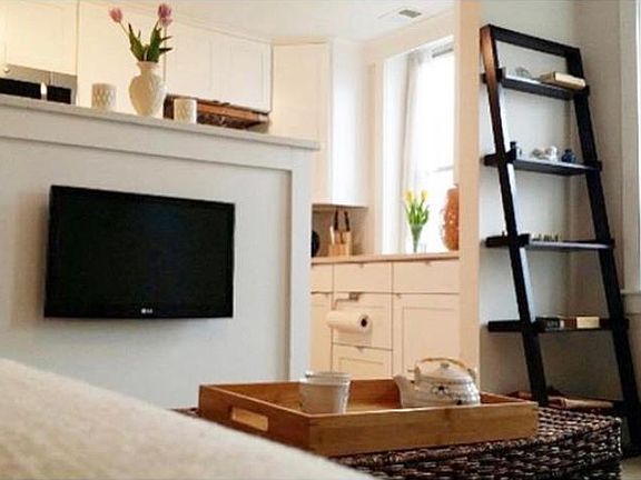 This comfortable modern furnished studio is the perfect place for you! It features a modern custom-built Murphy/wall bed with linen couch and under-bed storage, walk-in closet, large state-of-the-art kitchen with stainless steel appliances, large stove, glass-top cooking range, built-in microwave, huge fridge, large counter space, dishwasher, modern washer/dryer in unit, built-in modern bookcases tucked behind a beautiful cabinetry, hardwood floors. modern fixtures, wall-mount for a TV, three additional closets. This top-floor apartment overlooks Columbia Heights with four large windows and a southern exposure which lets in a ton of natural light to the apartment and gives you beautiful views of the sunset year round! This apartment rents for just $1,300/month with a 12 month lease! Located at the Park Plaza Apartments in the heart of Columbia Heights just 2 blocks from the Columbia Heights station metro stop with access to the yellow and green lines and 2 blocks from the 16th Street and 14th Street bus lines! 1 block from Target, Bed Bath Beyond, and many restaurants and a 5 min walk to Giant grocery. Included in this low price is a key accessed bike room, fully renovated laundry room in addition to the w/d in the unit itself, water, and trash removal. Street parking or you can rent a covered parking space at DCUSA parking garage across the street. Available immediately. One month security deposit required. Video tour available upon request. Rent includes water and trash removal. Renter pays foe electric and internet. Small cat or dog allowed, 30 lbs or under at full size weight. On street parking with zone sticker. Covered parking spots available for rent at nearby DCUSA lot walking distance from apartment.