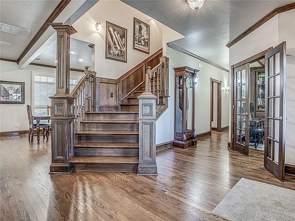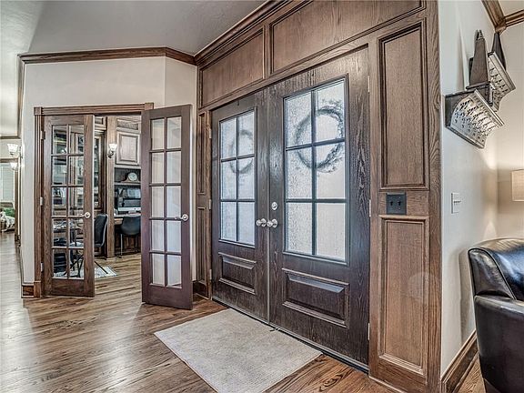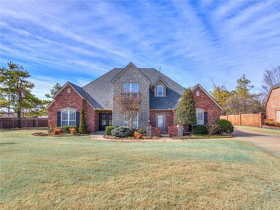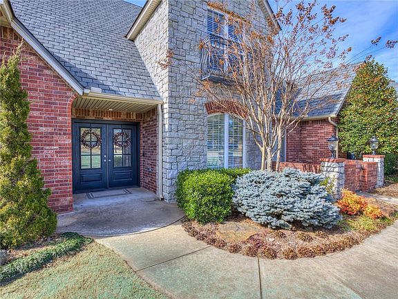 This custom built home is located in a GATED COMMUNITY in Carl Albert Schools. 3 Bedrooms with 3.1 Bathrooms, STUDY and a 4 car garage. The 4 car garage has an inground STORM SHELTER. Roof replaced in 2019 with a CLASS 4 SHINGLE. As soon as you walk into the house there are beautiful real HARDWOOD floors throughout. This home was built with amazing custom wood work. Large living room with FIREPLACE. Windows have shutters! Kitchen has been updated with QUARTZ countertops. Kitchen has a breakfast bar, island, double ovens and plenty of storage. Study has french doors and large built-ins. Laundry room has built-in mud bench. PRIVATE master suite with remodeled bathroom that has his and hers sinks. It also has beautiful walk-in shower and a huge walk-in closet with a built-in dresser. All the bedrooms have their own bathrooms. Upstairs Game Room/Workout Room with kitchenette, bar and a bathroom. You can relax on the covered patio over looking the inground concrete pool.