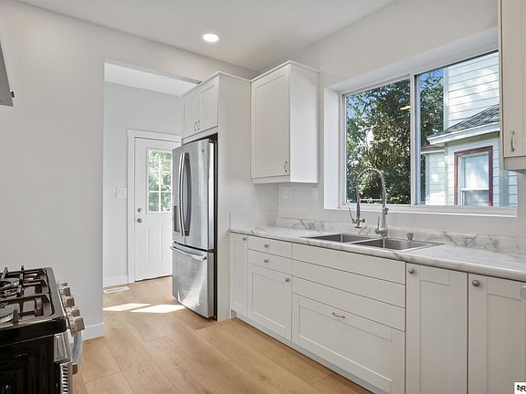 Enjoy contemporary living at its finest in this exquisitely remodeled home which greets you with a large covered front porch! The open-concept layout boasts 9-foot ceilings, creating a spacious and inviting atmosphere. The kitchen is sure to please with its brand new cabinetry, sink, and countertops—perfect for both everyday living and entertaining. The brightly lit staircase will take you upstairs to 3 bedrooms and a full bathroom with beautiful new tub/shower & tiling. The primary bedroom has lots of natural light and a walk-in closet. Every detail has been considered with brand new windows and flooring throughout, along with updated electrical wiring and plumbing. The exterior offers modern, maintenance-free vinyl siding, a newer roof and A/C unit, as well as, a fully fenced yard. For added peace of mind, a Service One home warranty is currently in place. Don’t miss the opportunity to own this stunningly updated home where comfort and style seamlessly blend.