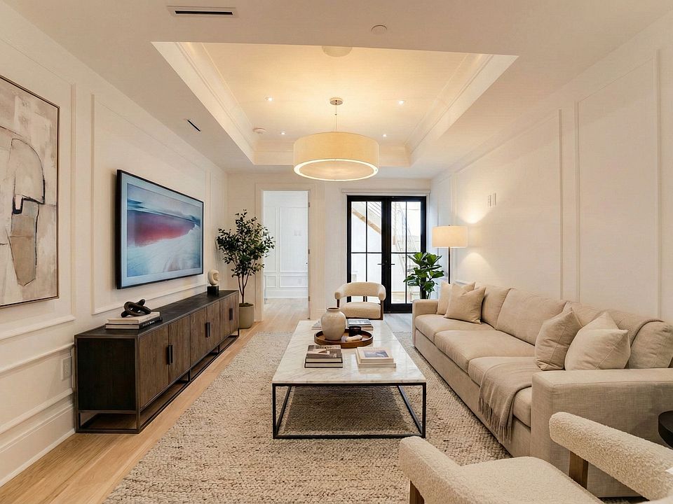 Inside, discover paneled Miele appliances paired with sophisticated Crystal Cabinetry, distinctive mullioned Marvin windows, generous ceiling heights, and custom crown and baseboard millwork. Wide-plank, white-washed white oak solid wood floors flow seamlessly throughout.