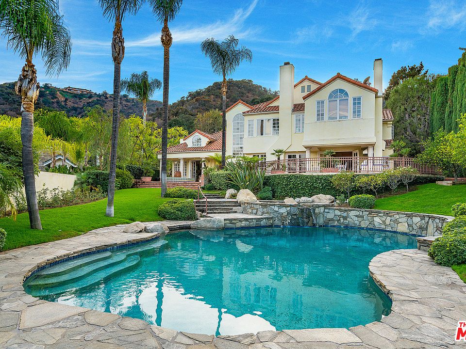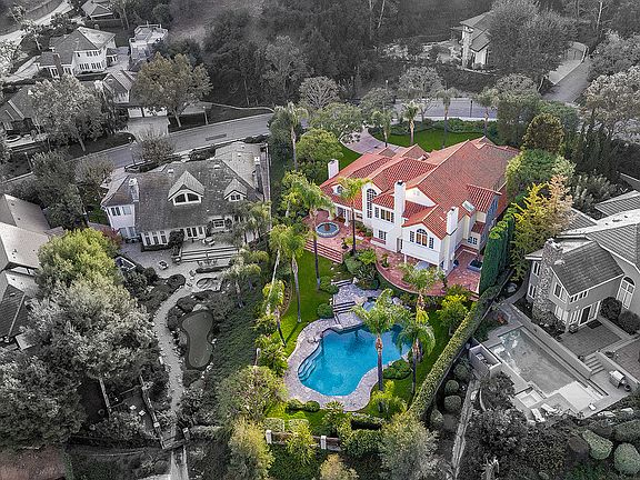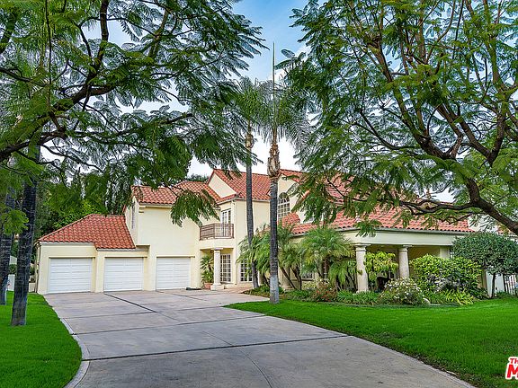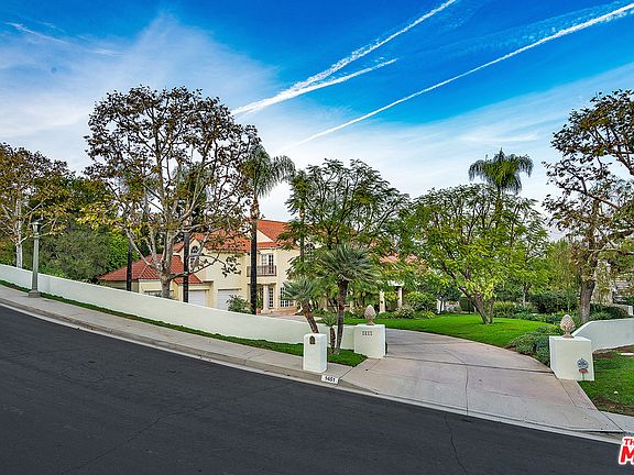 **OPEN SUN 12/3 from noon to 3pm** ... Designed by Emile Gabbay, A.I.A. Beverly Hills, this spectacular El Mirador Ranch estate embodies the charm of a Mediterranean villa, with the excitement of modern architecture. The floor plan flows from room to room and takes advantage of the beautiful mountain views. It was built to accommodate an art collection with niches and shelves, and halogen lights for accents. It was possible to display large scaled pieces in several strategic locations. The home consists of approximately 5,800 sq. ft. with over 2,500 sq. ft. of terraces suitable for dining and entertaining. It has 14 rooms plus 4.5 bathrooms and a three car garage surrounded by thick stuck walls. The entry features 8' double bronze doors open to grand 18' high vaulted foyer. Downstairs there is a 20 x 27 living room, large formal dining room, library, office or computer room, family room, large gourmet kitchen, breakfast room, maid's quarters and a three car garage.