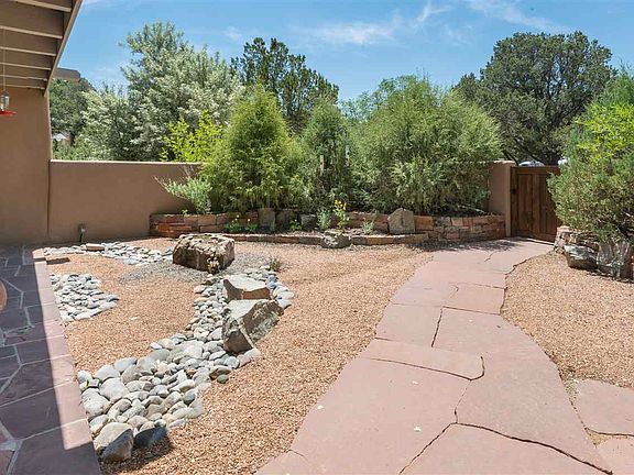A beautiful example of Santa Fe Style with light contemporary elements, this marvelously appointed 2 bedroom/2 bath home with office is sure to please! The convenient location, just minutes to downtown on the historic Old Pecos Trail, is juxtaposed by wonderful views of Atalaya, and the surrounding foothills to the Northeast. The intimate fenced-in backyard with hot tub backs up onto space, arroyos, and lots of trails and walking paths...walk to Museum Hill for lunch! Recently renovated, the new roof and electrical systems are just two examples of the fastidious and careful commitment to maintenance that this home has received. Come see the great value this move-in ready home has to offer!