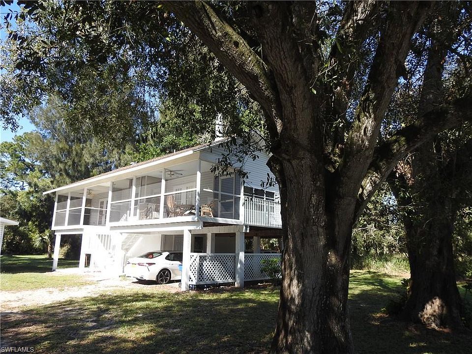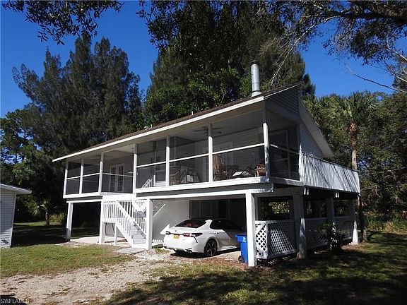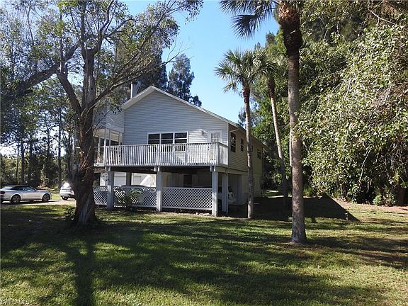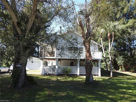 Charming cottage styled stilt home nestled under shade trees with porches half way around. This home feature 2 bedrooms and 2 bathrooms one with a private screened porch. A great room set up with eat in kitchen and living area with a wood burning fireplace and French Doors leading to another screened porch. There is a two room area (Unfinished) below the main living area with AC and plumbing available for a possible work room or rental unit. There is also a 2 Car detached garage to the side of the home and another whole lot behind with options of additional garages or another home.