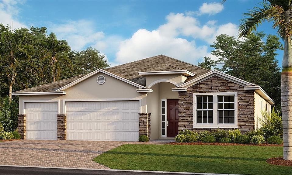 Under Construction. This brand new 2,368-square-foot home is waiting for you. Upon entering the Destin, two bedrooms and a full bath can be found to the side, and a bright, naturally lit kitchen, great room, dining room, and breakfast nook can be found straight ahead. Every aspect of this home design accentuates the open-concept feel, with the kitchen featured at the heart of the home. The kitchen includes a large center island, plenty of cabinet and counter space, and a convenient walk-in pantry. The primary bedroom is located at the back of the home for privacy and features a charming tray ceiling, two walk-in closets, a double vanity, garden tub, and separate shower. A fourth bedroom is also located at the back of the home, opposite the primary bedroom, and a third full bathroom is fittingly located next to this bedroom. Off of the great room is a spacious covered lanai that provides a great space for relaxing or dining al fresco. Photographs, colors, features, and sizes are for illustration purposes only and will vary from the homes as built.