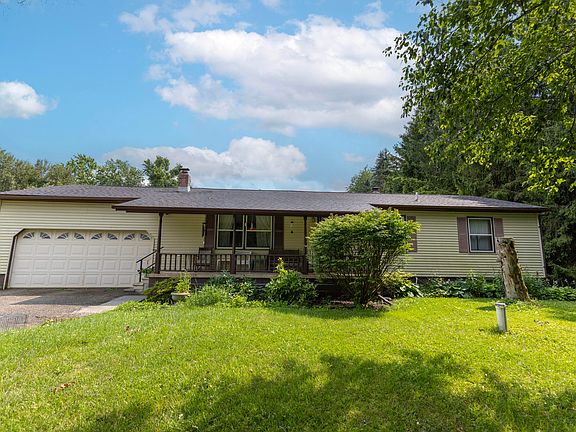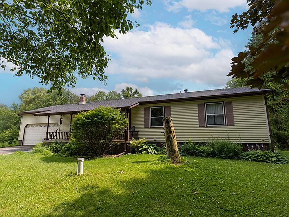 GREAT location!! 10 gorgeous acres that backs up to Metamora Country Club golf course. Cozy ranch home with attached garage and full walkout basement. Basement has 2 bedrooms and is plumbed for a bath, also there is a gas burning stove, great opportunity to make it a great rental space. First floor laundry. New electrical in the garage, living room, dining room, kitchen and bathroom. New recessed lighting in the large living room. New carpet and LVT flooring. So much potential with this home and property. Large pole barn for storing your extra ''toys''. New well pump in 2018. New hot water heater in 2023. Don't miss out on your opportunity to have your own ''space'' and grow a large garden if you want. Very peaceful and serene. BATVAI
