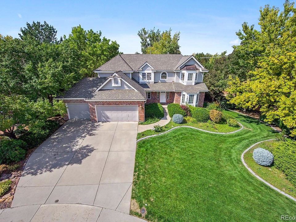 With expansive grounds & enchanting gardens, you'll be wowed by this timeless beauty in the coveted Preserve of Southbridge of Littleton. Upon the grand entry, on either side is a formal dining room and a peaceful front sitting area perfect for lounging. Natural light, hardwood floors, and a lovely warm palette welcome you in. The impressive floorplan stuns as the great room showcases double-height vaulted ceilings, a striking brick fireplace with a wall of windows and shutters. The epicurean eat-in kitchen boasts granite countertops, SS appliances, crafted cabinetry, an island, tiled backsplash and range hood. The main level is completed with a bedroom/study and full bath. On the upper level you'll find a private primary ensuite w/ vaulted ceilings. Indulge & relax in the spa-like bathroom boasting a soaking tub, double vanities, and a glass enclosure shower. With a rare four beds on the same level, the three remaining bedrooms offer endless possibilities. Descend to the fully finished garden level basement which amplifies the livability of this home with a spacious recreational space, bedroom, office, full bath & wet bar. End your days by retreating through the sliding glass doors onto the grand main level deck to reveal a spacious green lawn w/ sensational landscaping. Poised on just under a half-acre lot in a cul-de-sac, this lush oasis is a Colorado dream. With close proximity to the Highline Canal & its 75 miles of trails, Southbridge Park, and historic downtown Littleton, this home is beyond idyllic.