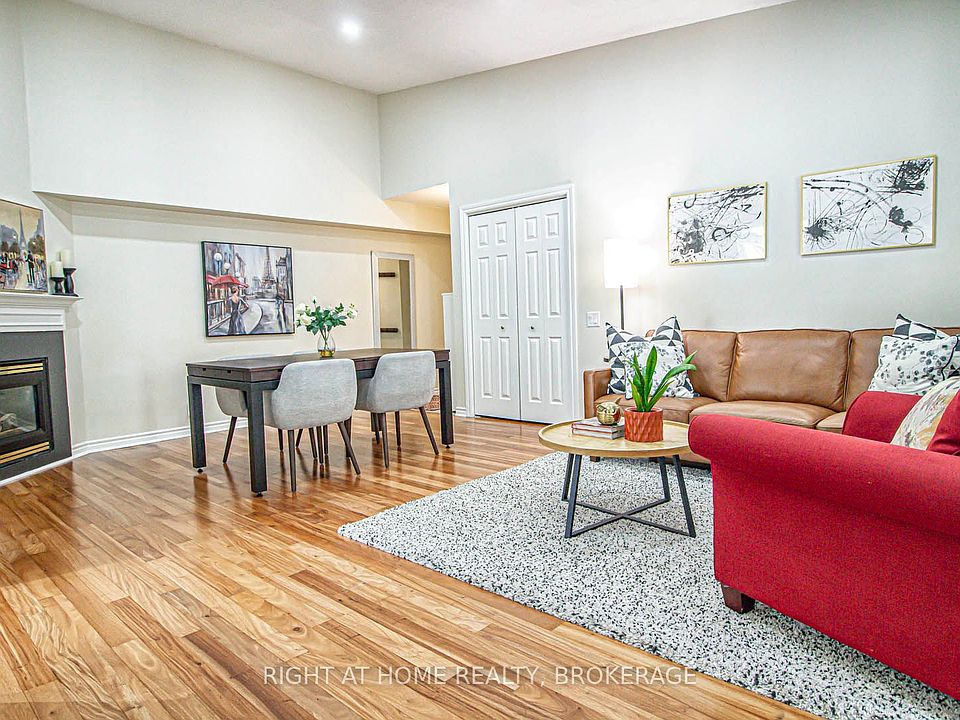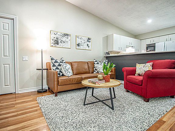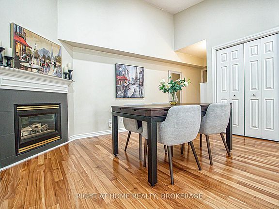 Absolute Gem!! Gorgeous 1,020 Sq.ft. Corner Condo in Burlington's Vibrant Tansley Woods! Bright, open-concept layout with soaring vaulted ceilings, abundant natural light, and a cozy gas fireplace. The kitchen boasts ample counter and cabinet space, a breakfast bar, and an eat-in area. Gleaming floors and pot lights create a luxurious penthouse ambiance. The spacious primary bedroom features a 5-piece ensuite and double closet, complemented by a large second bedroom and a 3-piece bathroom. Savor stunning top-floor views from the open balcony. Ideally located minutes from highways, shopping, restaurants, grocery stores, Tansley Woods Recreation Centre, Parks, and more. Includes ample visitor parking, a gym, and a party room. A must-see treasure!