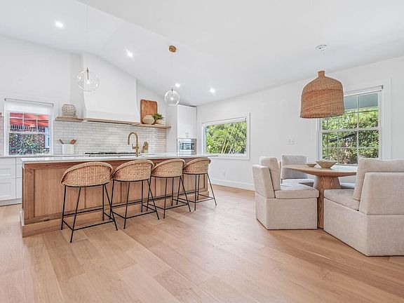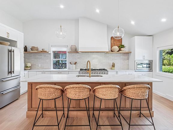Large deckModern designFresh paintElegant quartz countertopsOpen-concept floor planGas range topDesigner range hood