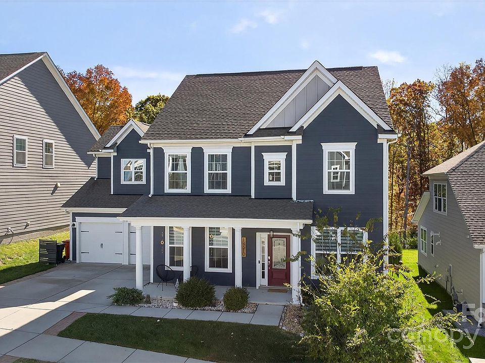 Cozy gas fireplaceInviting covered front porchOpen-concept kitchenFour spacious bedroomsLarge islandPremium serene wooded lotConvenient half bath