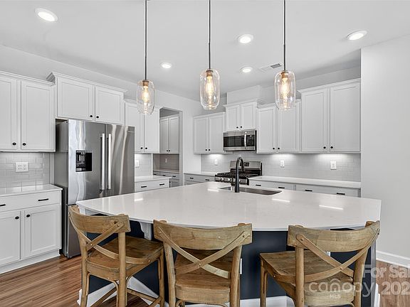 Welcome to Davidson East! This stunning home sits on a premium serene wooded lot and features a beautifully designed, lighted paver patio with a cabana - perfect for entertaining. Right near the greenway trail and located in a top-rated school district, this home offers the ideal blend of comfort, convenience, and community. The inviting covered front porch ushers you inside where you'll find luxury vinyl plank flooring throughout the main level, a cozy gas fireplace, and an open-concept kitchen equipped with a gas stove, quartz countertops, large island, and under-cabinet lighting. Formal dining area flows through your butler's pantry into the open kitchen. This open floor plan offers excellent flow, modern finishes, plenty of space for entertaining and exudes natural light. Up the first staircase, there are four spacious bedrooms, including your primary suite with a wooded view, along with an additional hall bath. The 2nd staircase leads to a large loft - or optional fifth bedroom - complete with a walk-in closet. Back on the main level, you will also find a stylish office with designer barn-style doors and a convenient half bath providing additional flexibility for work or guests. Additional features include a tankless water heater. Yard has been recently aerated & seeded and ready for spring growth. Davidson East is conveniently located along Hwy 73 with easy access to 77 & 85, along with close proximity to area parks, shopping & dining. Currently zoned for Davidson Elementary, Bailey Middle, and Hough High School.